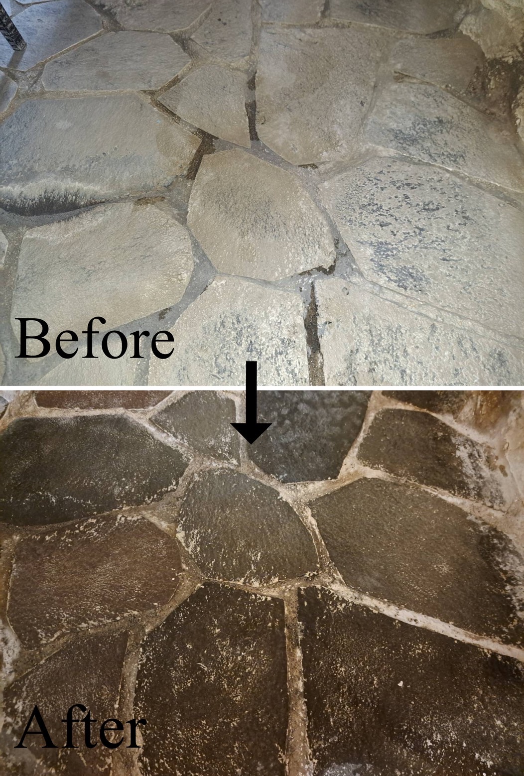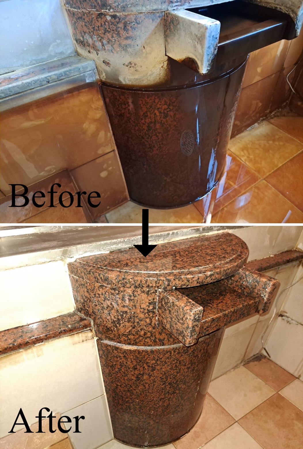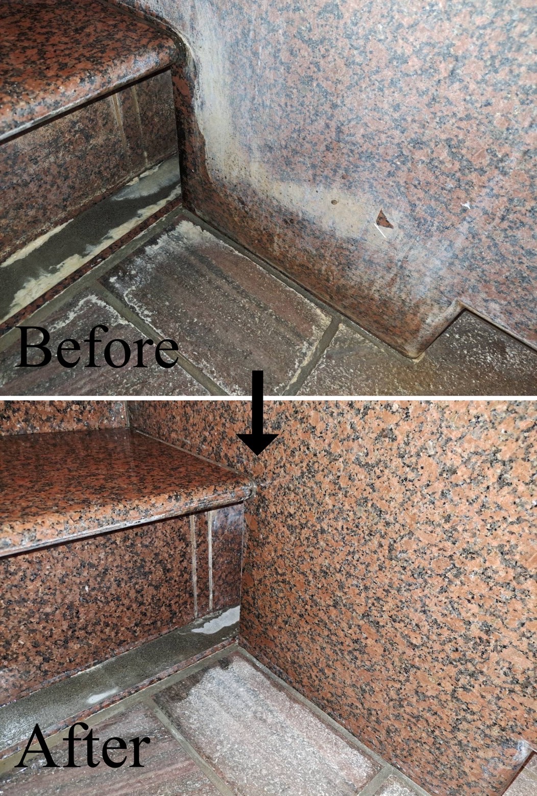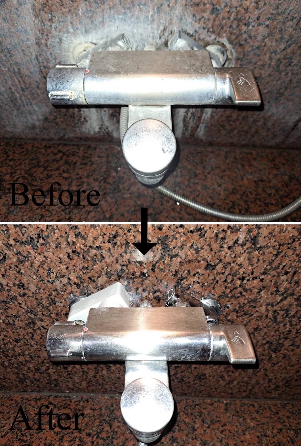 石材に付着したシリカスケール汚れを特殊クリーニングで洗浄した後再び汚れにくいように特殊コーティングを施しています!